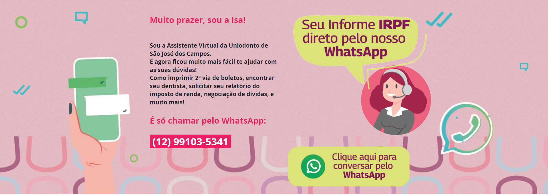 O atendimento para vendas de planos pessoa física e jurídica da Uniodonto de São José dos Campos passou a ser centralizado em um único número, via WhatsApp. Ao entrar em contato pelo 12 3202-6000, o usuário é convidado a preencher um questionário rápido, que auxilia no direcionamento ao vendedor especializado.